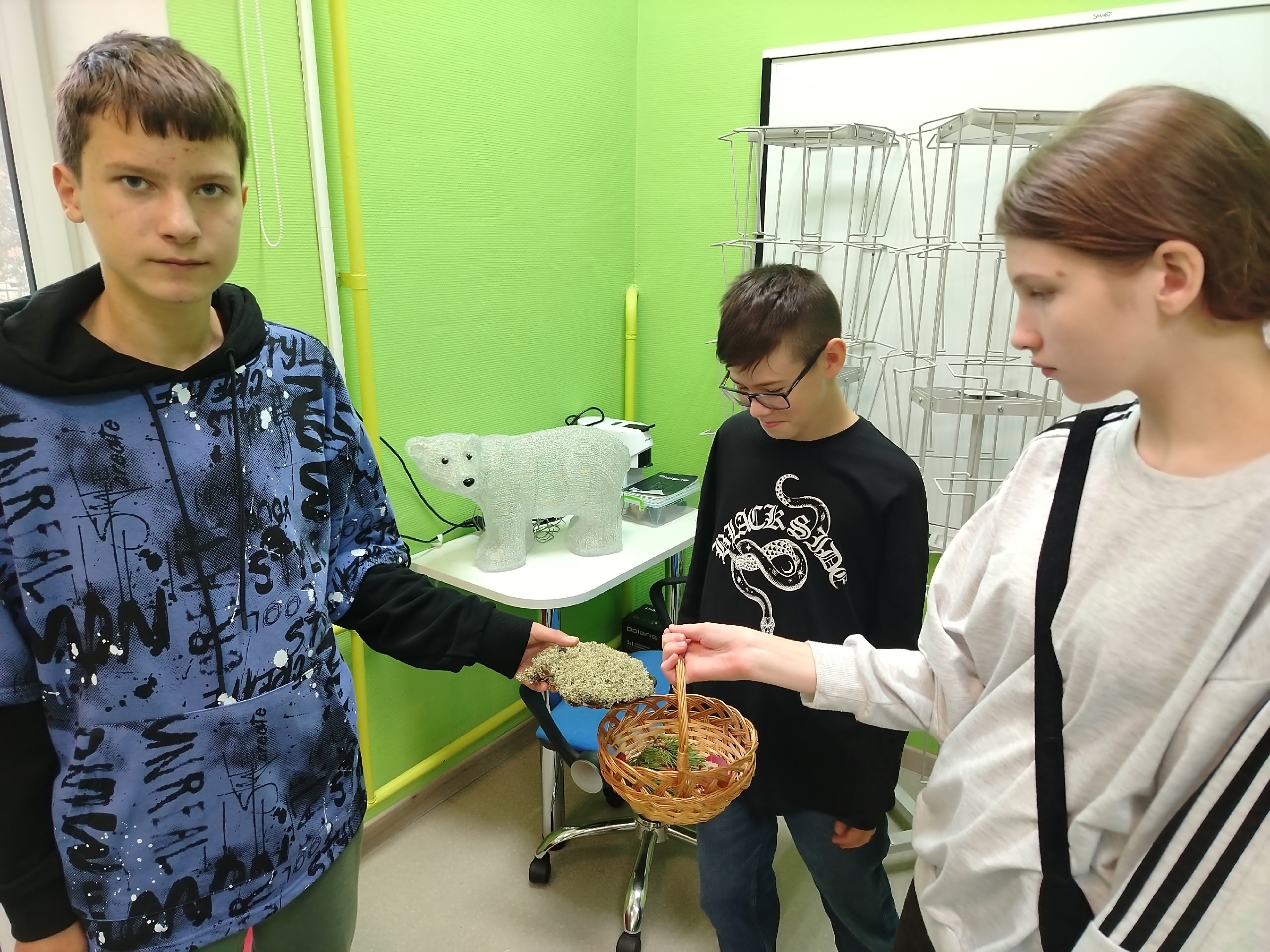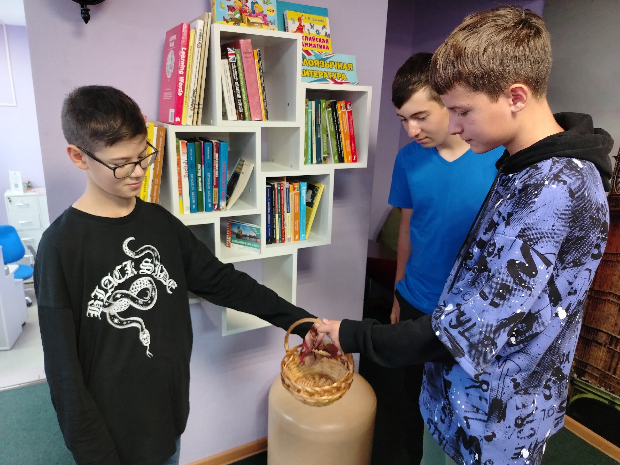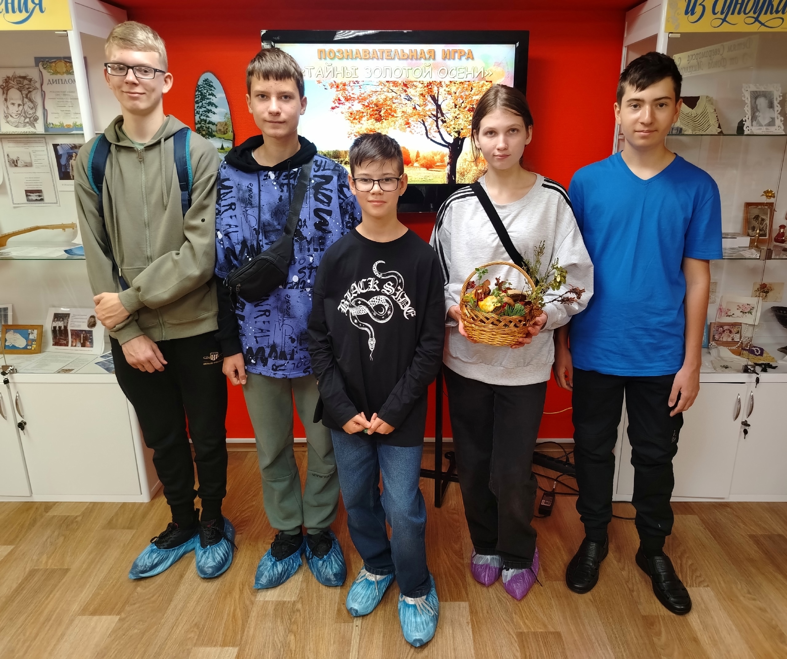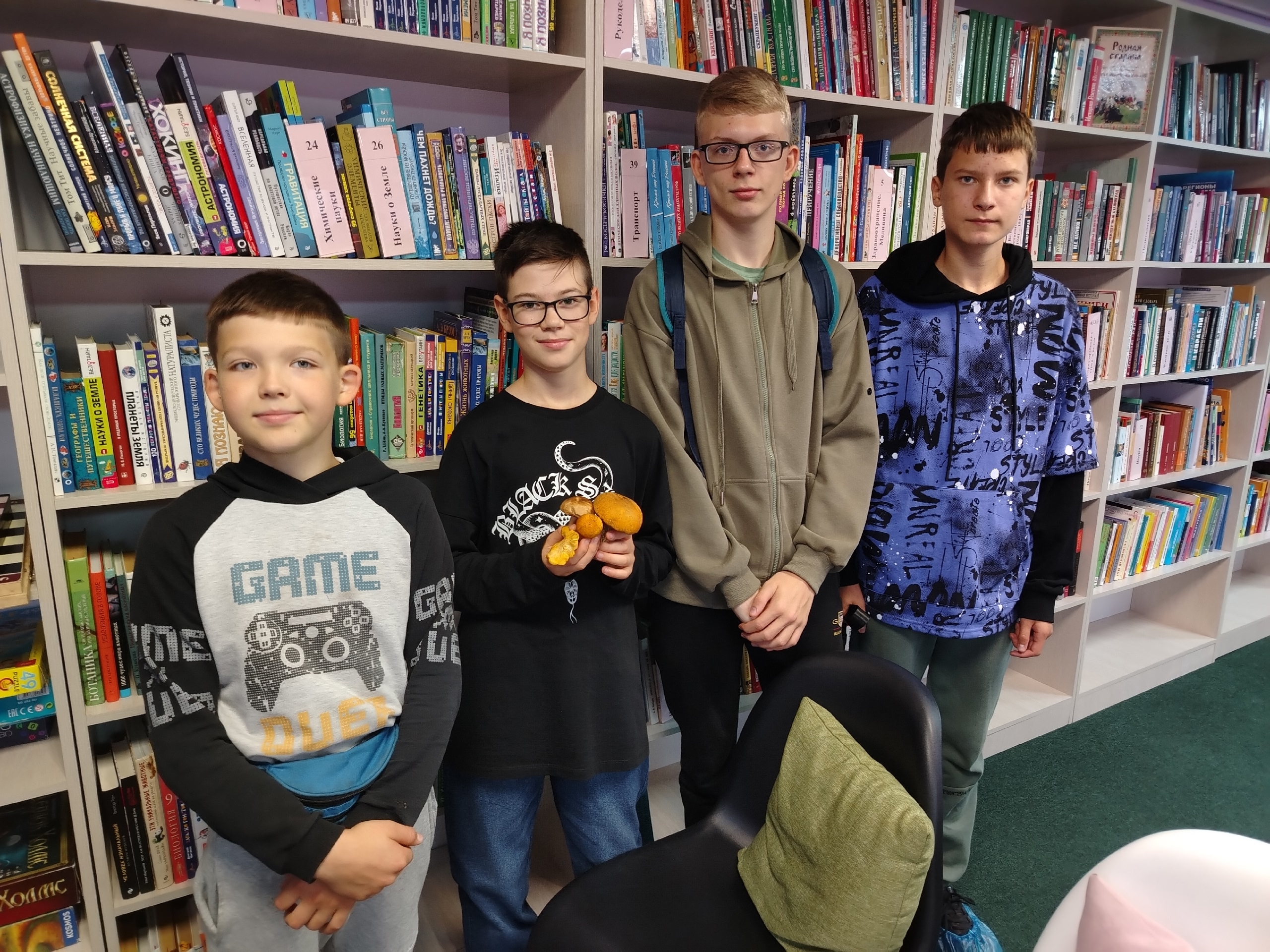 Дети успешно выполнили все задания, а затем отправились на поиски даров леса, припрятанных на разных станциях в библиотеке. Найдя все необходимые предметы, школьники дружно собрали красивое грибное лукошко.