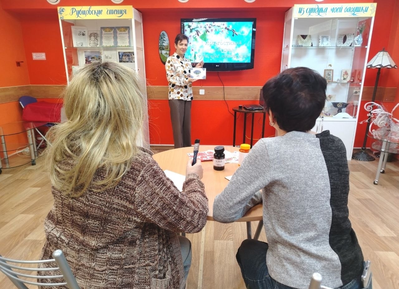 11 апреля в Центральной детской библиотеке имени С. Михалкова в рамках работы клуба «Сопки. БЕЗ ГРАНИЦ» губернаторского проекта «Северное долголетие» состоялось творческое занятие арт-гостиной «Весны чудесные мгновения».