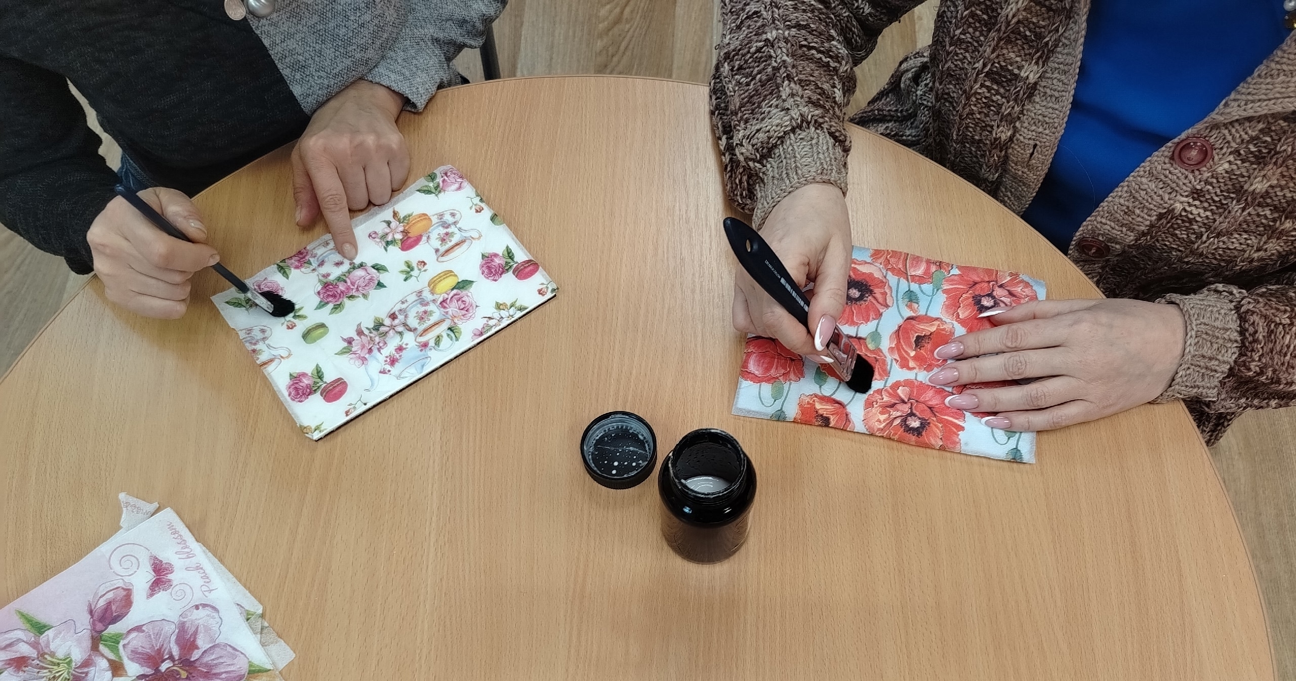 В завершение занятия участники рассказали, какими видами творчества они сейчас увлекаются, а также вспомнили о том, какие поделки они создавали в детстве. Оказалось, что у собеседников много общего. Очень ценно, что на творческом занятии было много общих интересных тем для общения.
