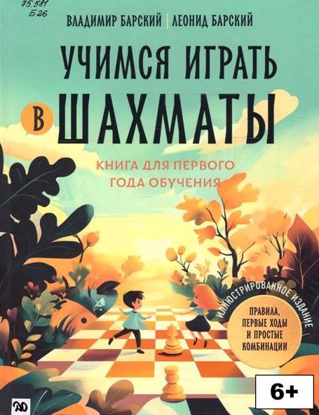 6+Барский В. Л. Учимся играть в шахматы : книга для первого года обучения / Владимир Барский, Леонид Барский. – Москва : Эксмо, Бомбора, 2025. – 107, [5] с. : цв. ил. – (Шахматы и шашки для детей). – ISBN 978-5-04-216430-9.