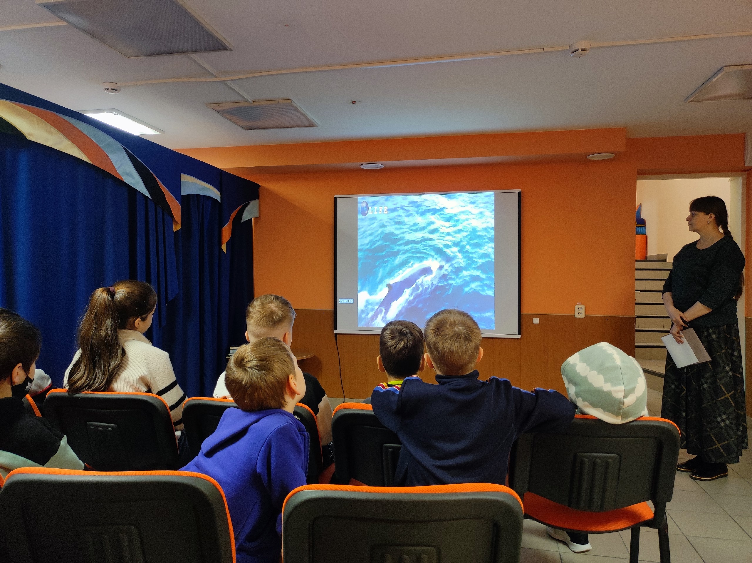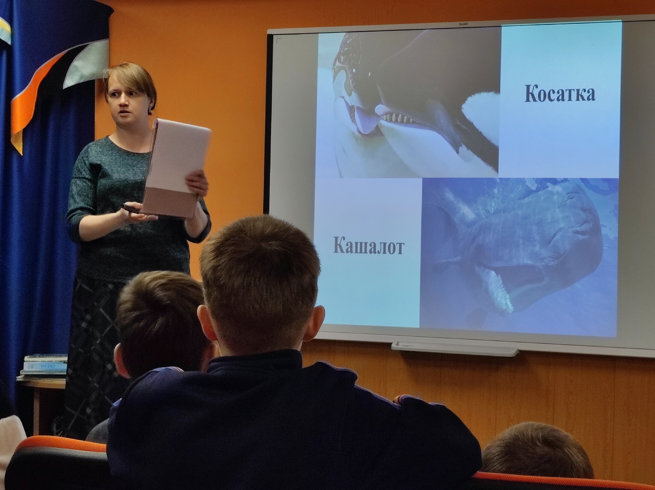 Участники мероприятия узнали, как тепло и доброжелательно эти животные относятся друг к другу, как воспитывают своё потомство, каким акробатическим мастерством обладают, как передают информацию, и какой секретный прибор есть у каждого дельфина.