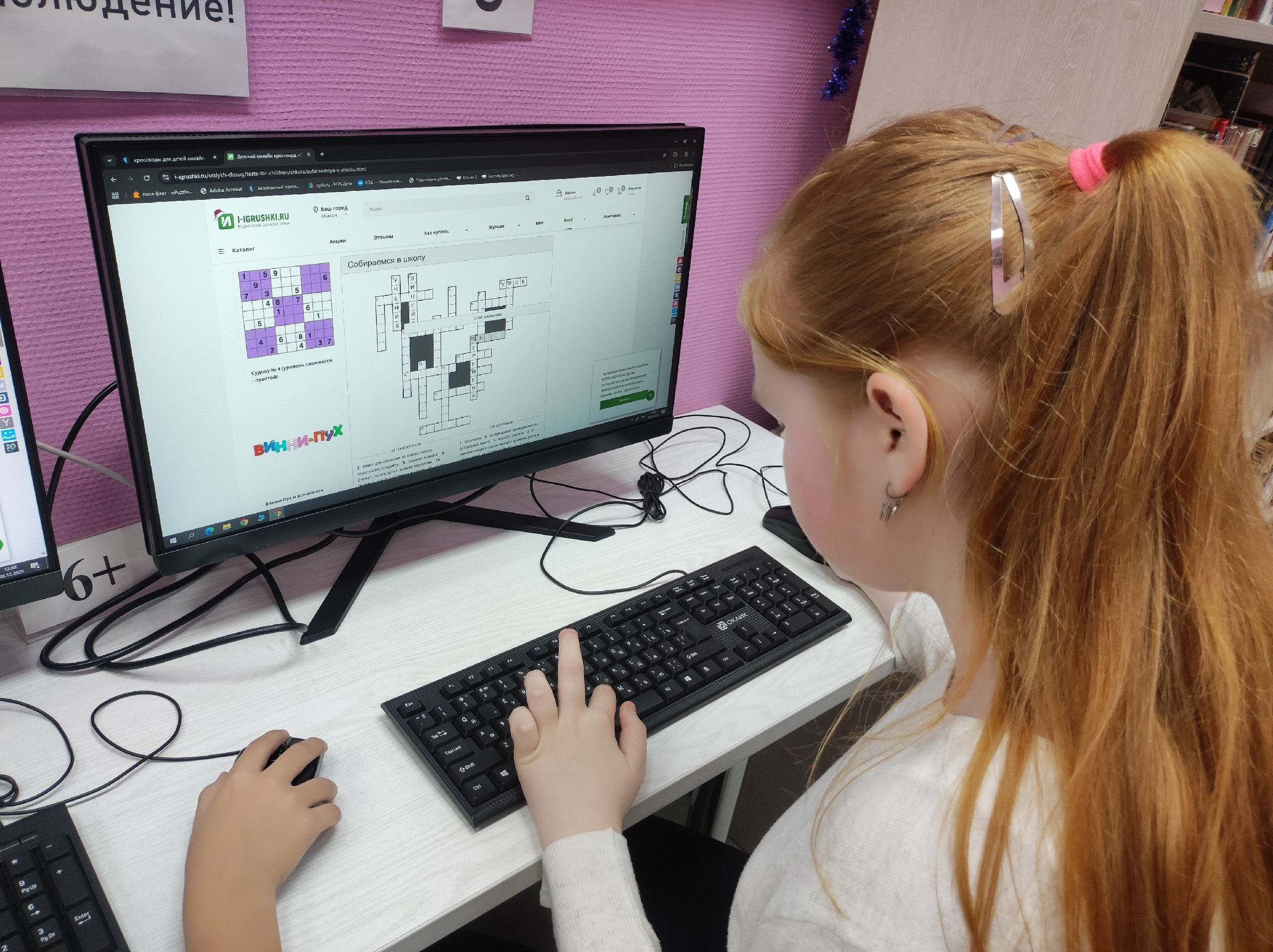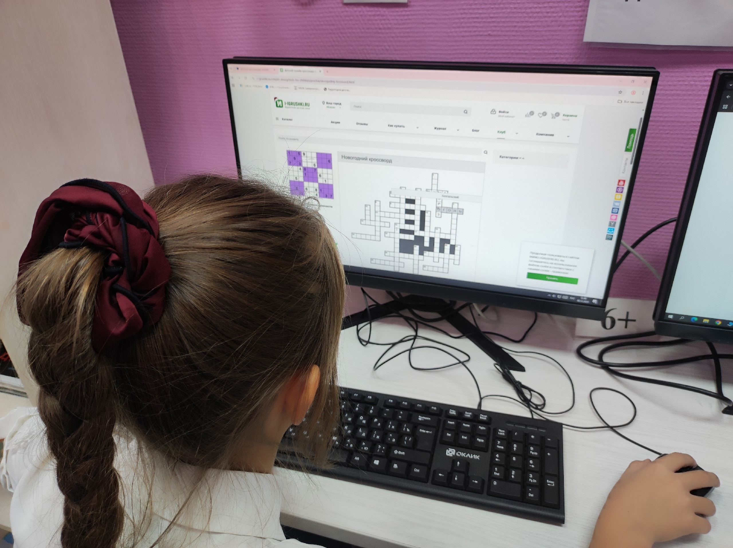 В этот день юные любители головоломок с азартом погрузились в мир загадок и ребусов. Дети с удовольствием разгадывали разнообразные кроссворды прямо на компьютерах, с энтузиазмом заполняя клетки буквами и находя правильные ответы. “Мы кроссворды разгадаем, в клетках буковки поставим!” – звучал их боевой клич, полный решимости и радости от процесса.