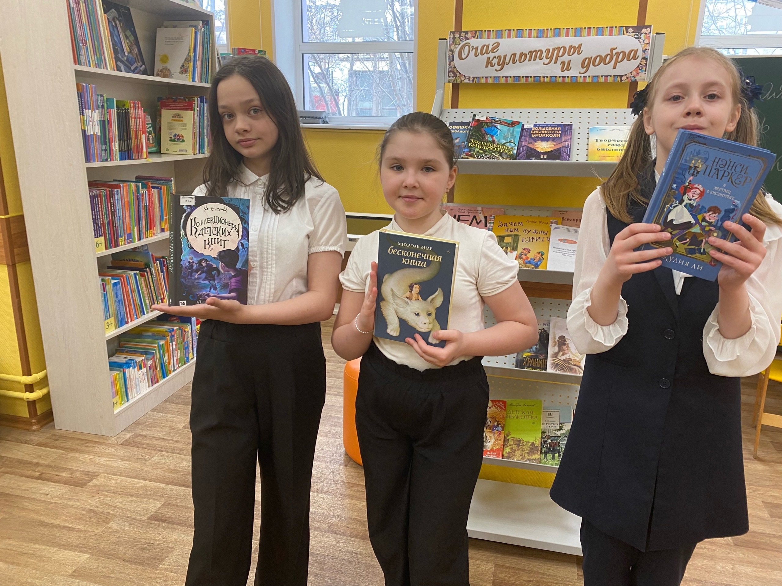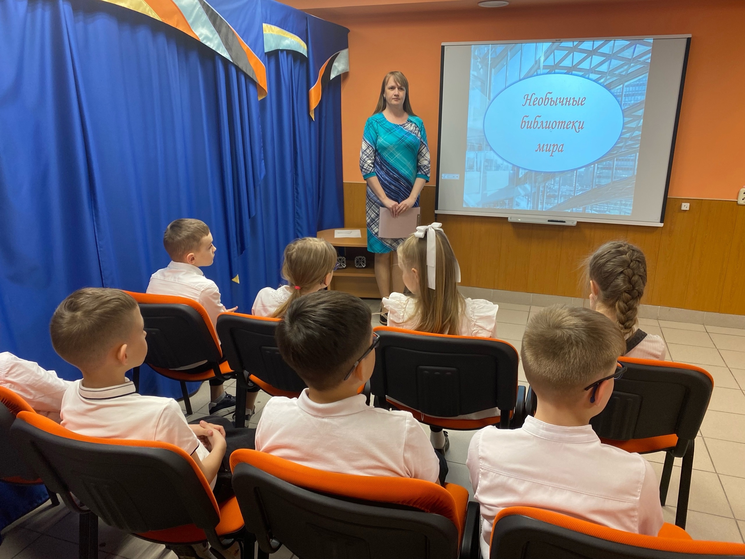 Всем присутствующим рассказали об истории праздника, о значении книги и роли библиотеки в современном мире, поговорили также о библиотечной профессии. С помощью презентации «Необычные библиотеки мира» ребята узнали о нескольких красивейших и богатейших библиотеках, в том числе и Российской национальной библиотеке.