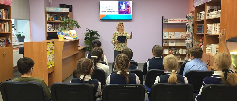 22  октября 2025 года ученики группы продленного дня 4Б и 4В класса МБОУ ЗАТО город Североморск Лицей №1 посетили единый урок безопасности «Интернет – территория риска» в Североморской детской библиотеке – филиале №2.