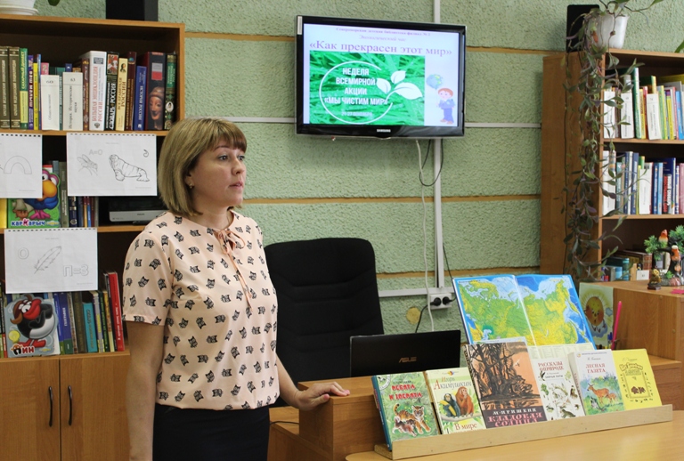 25 сентября 2018 г. в Североморской детской библиотеке – филиале №2 прошел экологический час «Как прекрасен этот мир». Мероприятие, приуроченное к неделе всемирной акции «Мы чистим мир», провела библиотекарь Оксана Степанова.