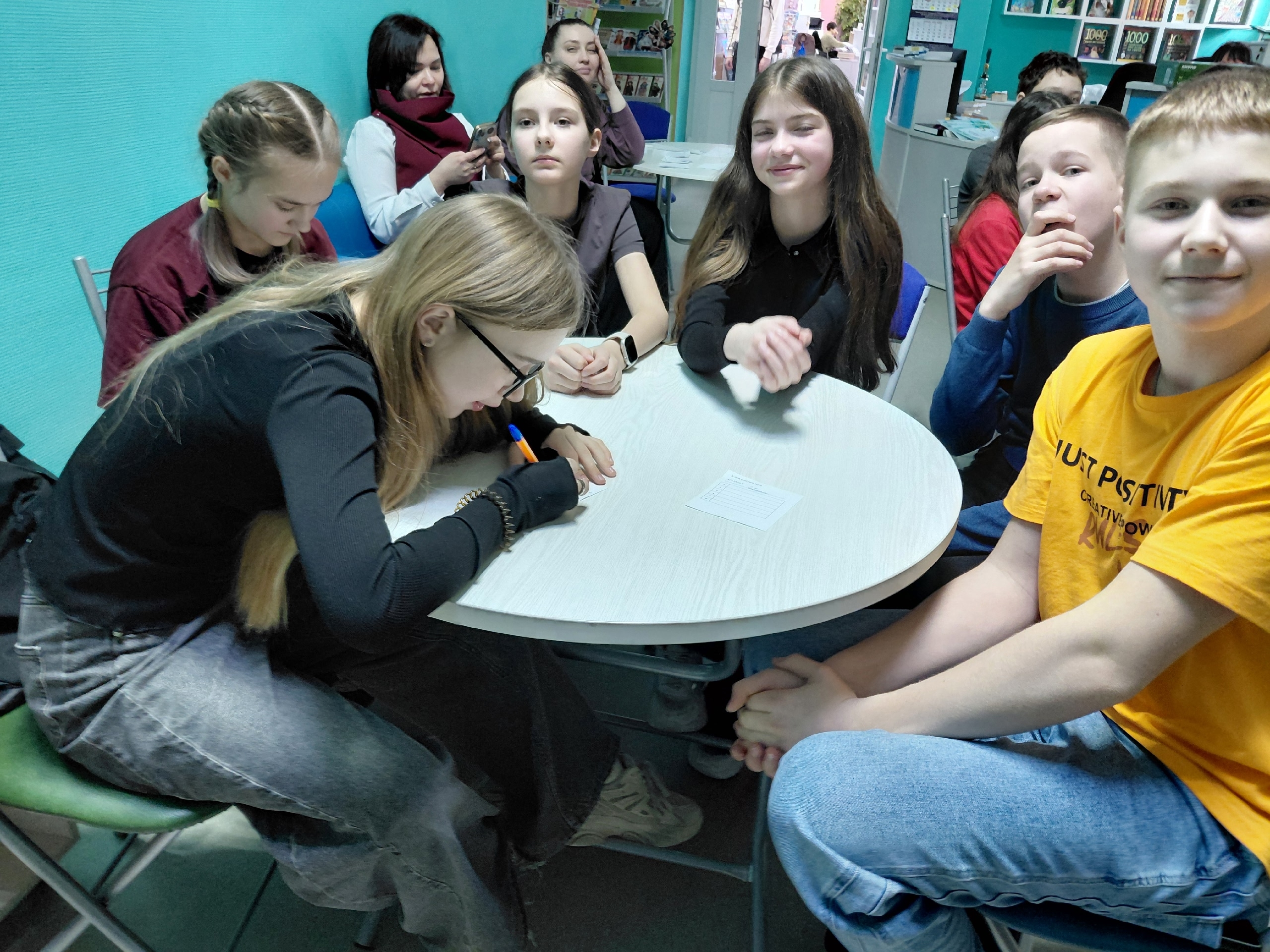 03 марта в Центральной детской библиотеке имени С. Михалкова для учащихся 5-х классов Гимназии №1 прошла экранная игра “Рифма в клетку” к Всемирному дню поэзии. Ребята, разделившись на команды, отгадывали строчки известных стихотворений, вспоминали их авторов и  литературные термины. Мероприятие прошло в формате интерактивной викторины, где за каждый правильный ответ команда получала баллы.