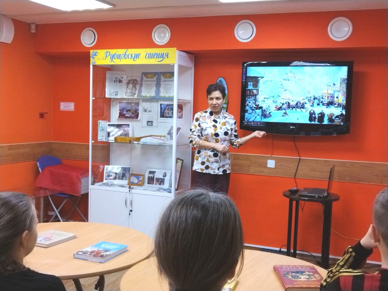 10 января в Центральной детской библиотеке имени С. Михалкова для детей школьного возраста состоялся фольклорный час “Традиции русского народа”.  На встрече дети познакомились с некоторыми традициям и обычаями, бытовавшими на Руси. Есть традиции и праздники, которые возникли очень-очень давно и сохранились до наших дней. Что это за традиции? Например, это традиционные праздники: Масленица, Пасха, Осенины, Рождество, Крещение, Святки. Рассказ об этих праздниках вызвал у школьников живой интерес, ребята делились своими знаниями в этой области и задавали вопросы.