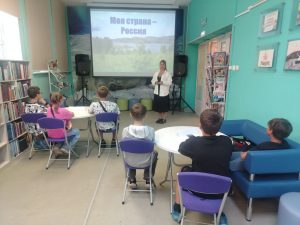 23 июля в Центральной детской библиотеке имени С. Михалкова для ребят прошла интеллектуальная игра “Моя страна”. Дети были разделены на две команды, готовые продемонстрировать свои знания о родной земле. Мероприятие началось с небольшого, но увлекательного рассказа о России – её истории, культуре, географии и выдающихся личностях. Юные слушатели внимательно ловили каждое слово, готовясь к предстоящим испытаниям.