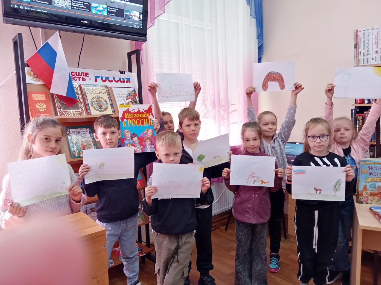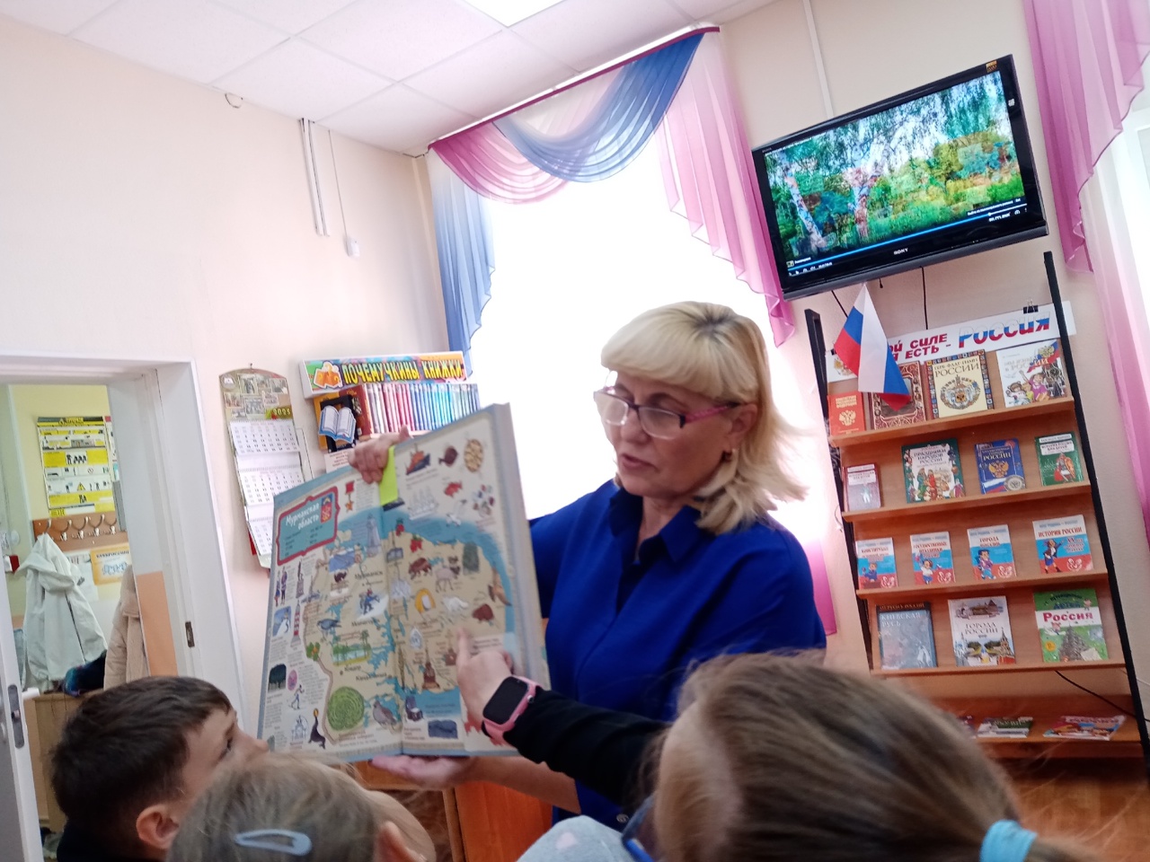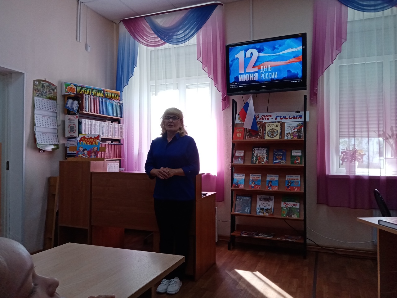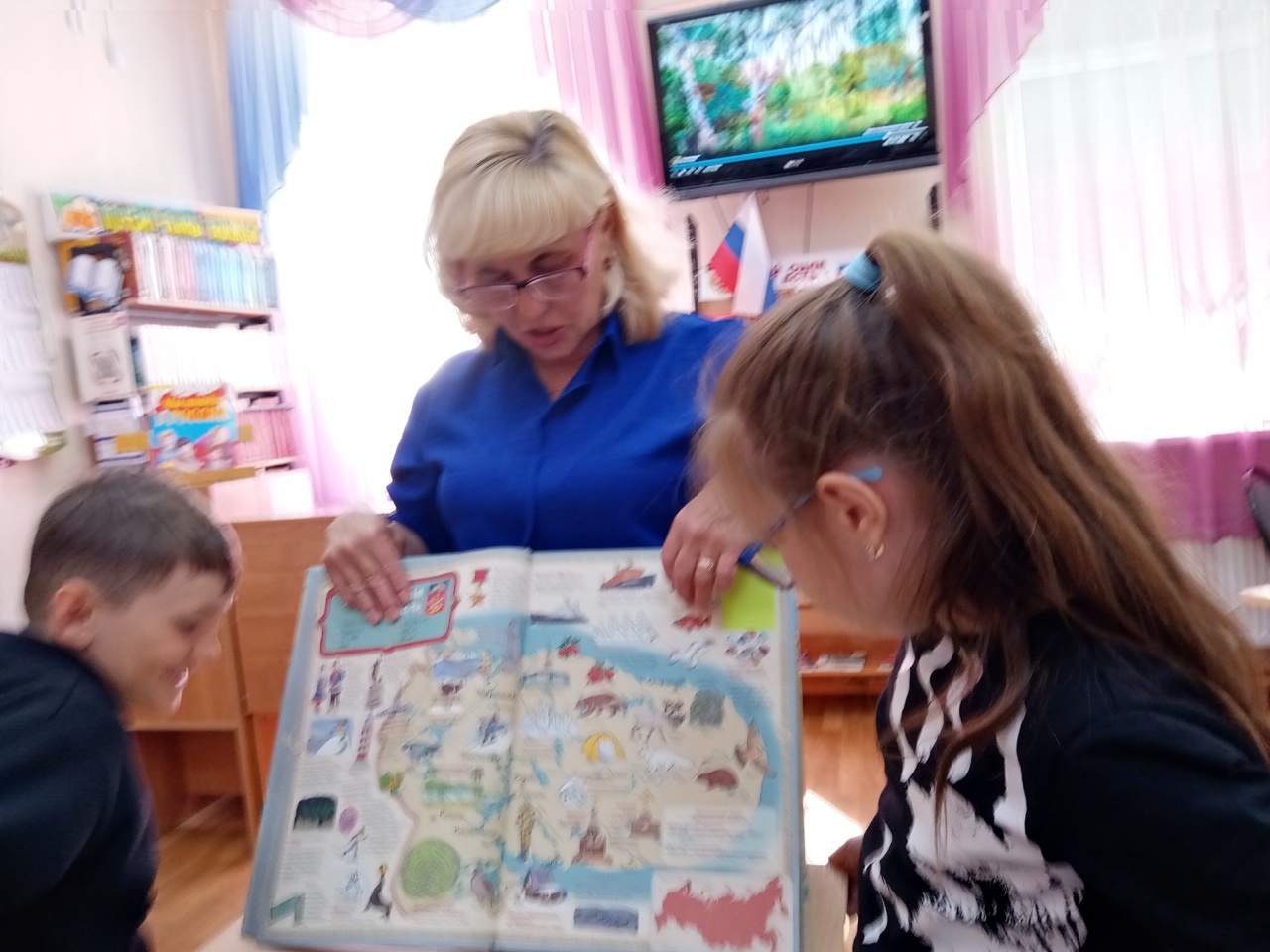 Заведующая библиотекой рассказала ребятам о том, что Россия — это независимое государство со своей территорией, государственным языком, законами и всенародно избранным Президентом.