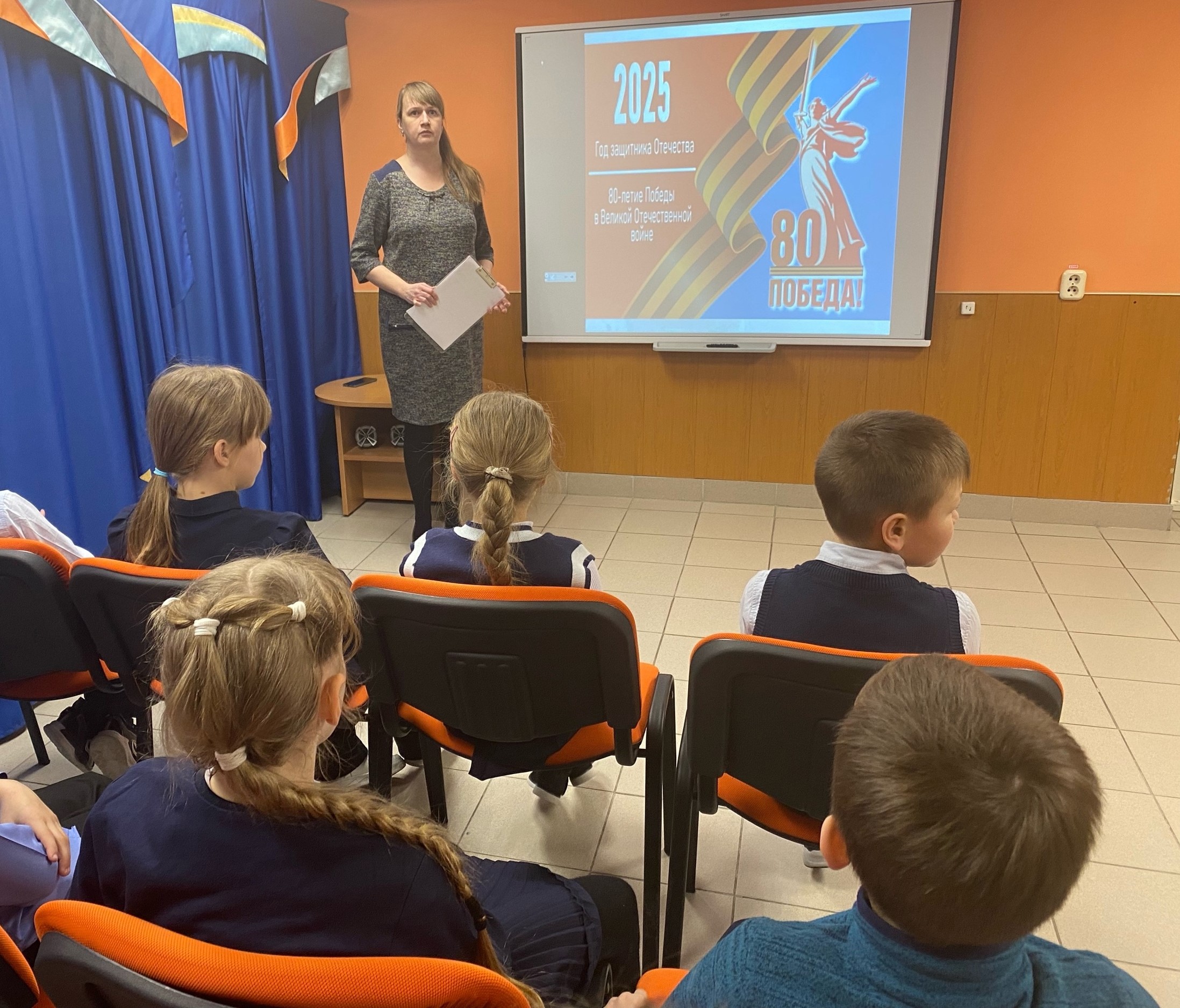 20 марта в 12.00 в Центральной детской библиотеке имени С. Михалкова для учащихся 3 «Δ» класса МБОУ Лицея №1 прошел исторический час «На московских рубежах» в рамках Года защитника Отечества и 80-летия Победы в Великой Отечественной войне.