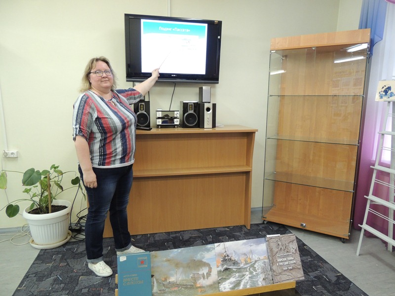Заведующая библиотекой-филиалом Никанова Ирина Александровна рассказала ребятам о героическом подвиге корабля «Пассат», о том, как моряки вступили в бой с превосходящими сила противника (три эсминца против сторожевого корабля и двух спасательных судов). Познакомила ребят с воспоминаниями адмирала А.Г. Головко о гибели корабля, а также поведала ребятам, что только благодаря мемуарам адмирала А.Г. Головко в 1956 году из книги «Североморцы» люди вообще узнали о подвиге «Пассата». С 1966 года координаты гибели «Пассата» (69°14′ с. ш. 35°57′ в. д.) объявлены приказом командующего Северным флотом координатами славы североморцев.
