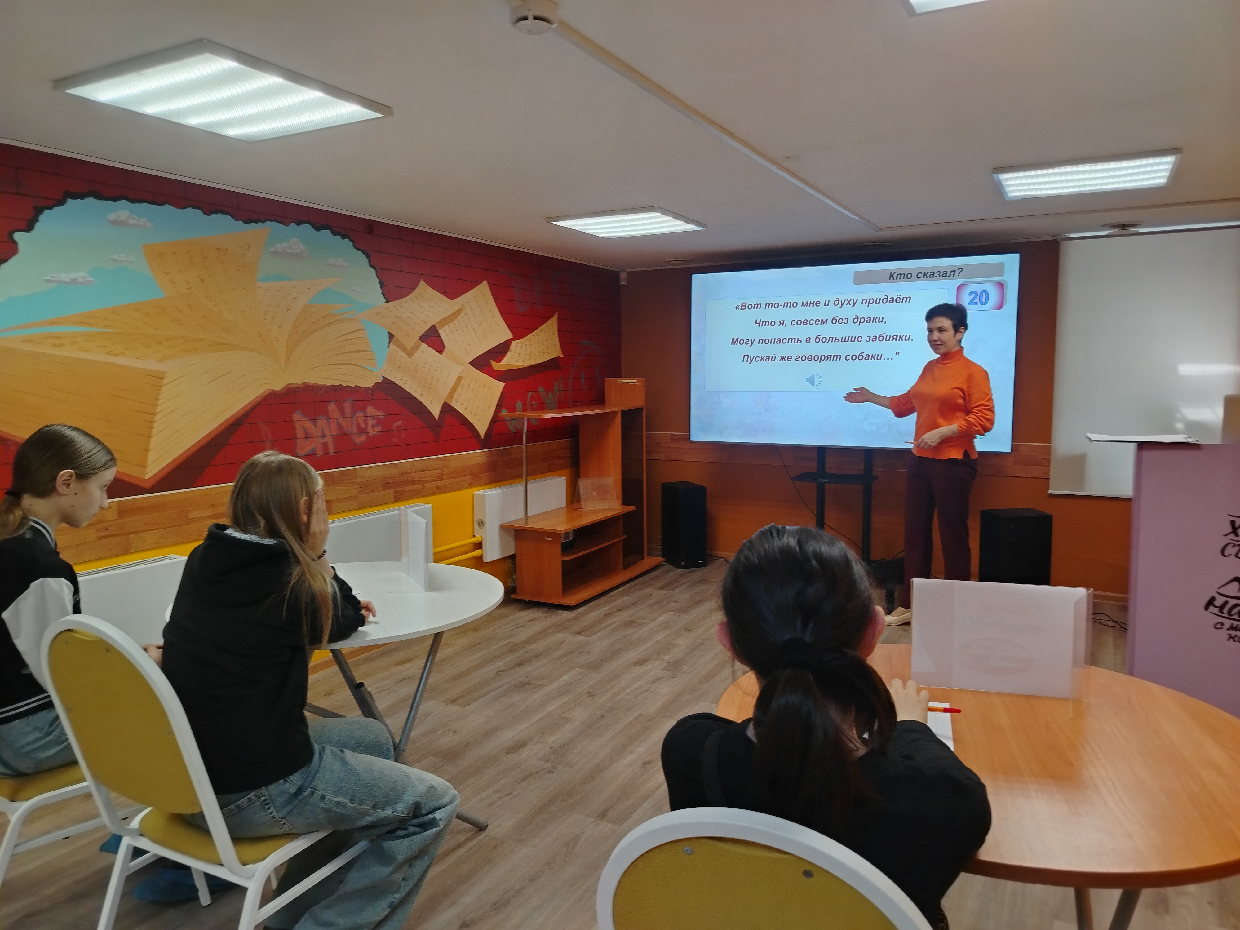 На мероприятии ребята по иллюстрациям и фрагментам произведений отгадывали названия басен, отвечали на вопросы викторины и собирали пазлы.