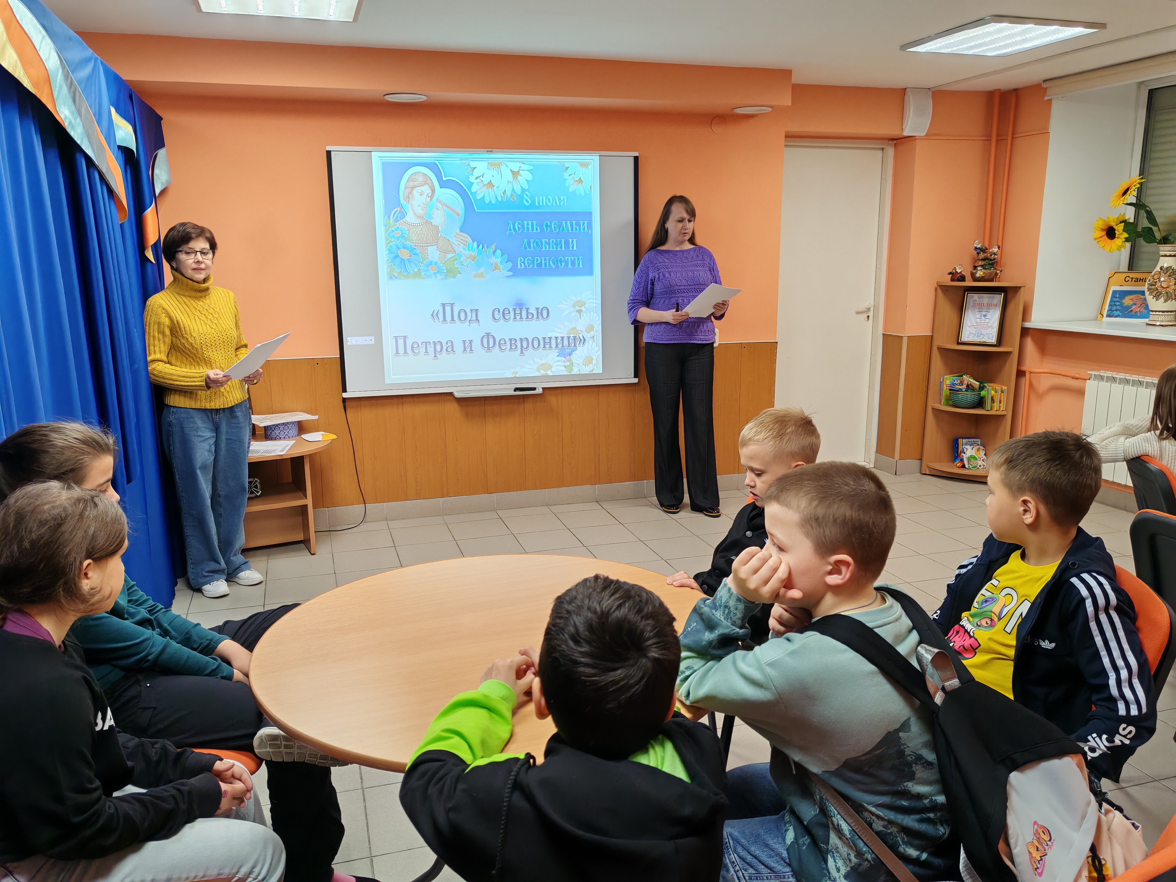 8 июля в Центральной детской библиотеке имени С. Михалкова  с ребятами из летнего оздоровительного лагеря школы №7  прошла трогательная и познавательная встреча под названием «Под сенью Петра и Февронии», посвященная Дню семьи, любви и верности. Гости мероприятия погрузились в историю праздника, узнали о жизни святых Петра и Февронии Муромских, посмотрев  тематический видеоролик. Особое внимание было уделено символу  этого дня – ромашке, и тем, кто удостаивается высокой награды – медали «За любовь и верность».