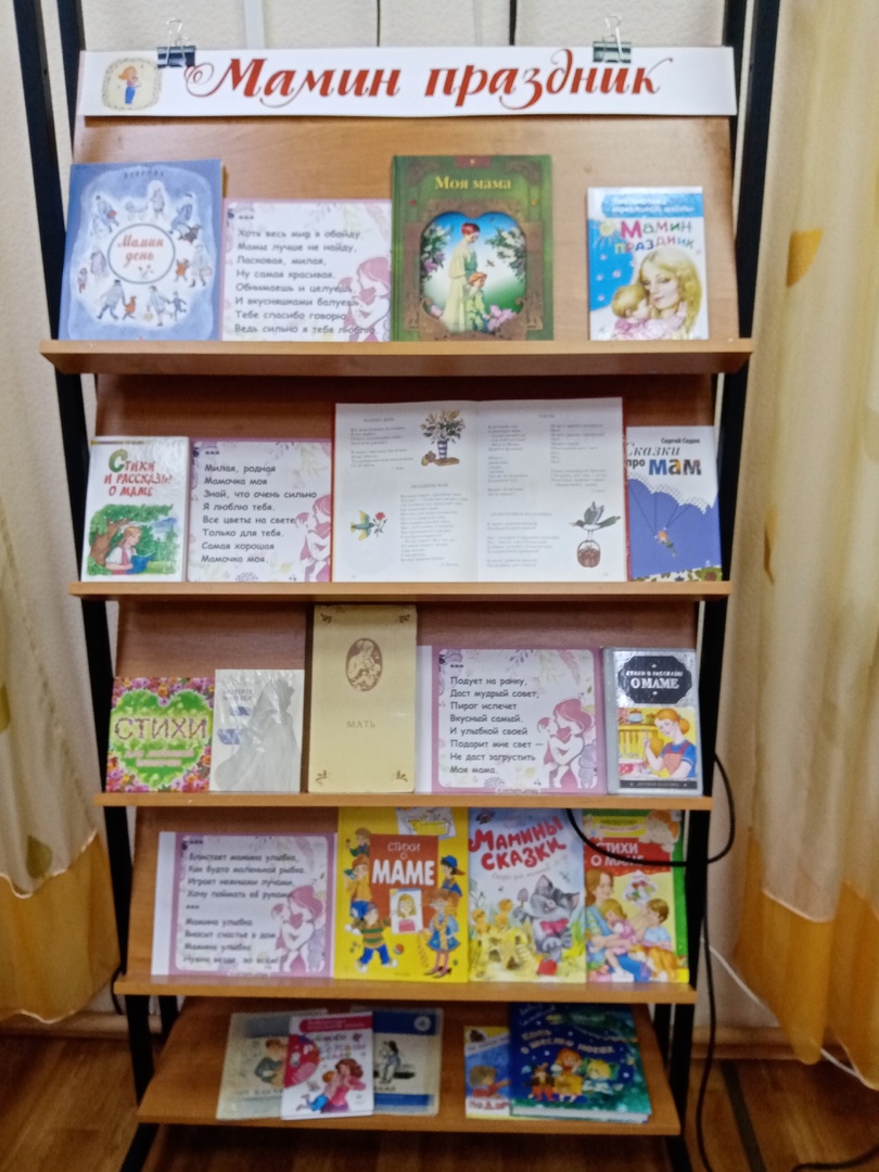 Для ребят подготовлена книжная выставка «Мамин праздник».