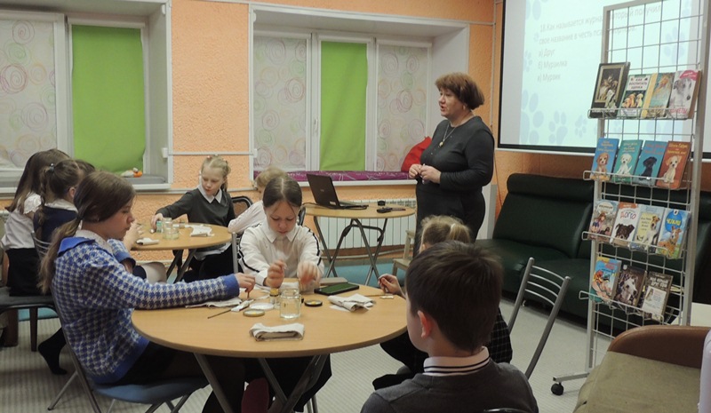 11 мая 2023 года в Североморской городской библиотеке – филиале №2 им. В. Панюшкина для членов экологического клуба «Земляне» состоялось мероприятие «Мой пес самый лучший на свете».Ведущая мероприятия Ольга Никуличева, используя видеоряд презентации, рассказала юным читателям о значении собаки в жизни человека. Библиотекарь заострила свое внимание на рассказе о собаках, которых использовали в наших войсках на фронтах Великой Отечественной войны. Школьники с большим удовольствием отвечали на вопросы литературной викторины, посвященной четвероногому другу. Ребята приняли участие в мастер-классе по изготовлению значков с изображением собаки.