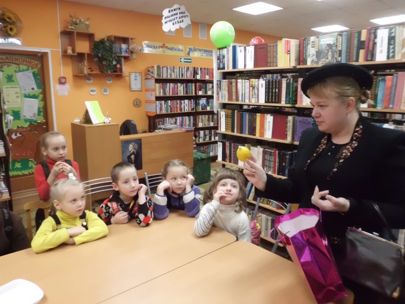 Праздник начался с замечательной песенки  «Книжкин дом» на стихи Юрия Энтина. Ребята с интересом посмотрели слайд-шоу и узнали, какие разные бывают книги. И тут вдруг в зале появилась Шапокляк, которая  захотела превратить ребят в своих помощников и научить их делать всякие гадости. Но ведущая решила доказать этой вредной старушке, что в библиотеке собрались не хулиганы, а дети читающие и творческие.  Она провела для ребят литературный конкурс, с которым дети успешно справились. Затем уже вместе с Шапокляк  ребята отгадывали загадки, играли, узнавали литературных героев, рисовали.