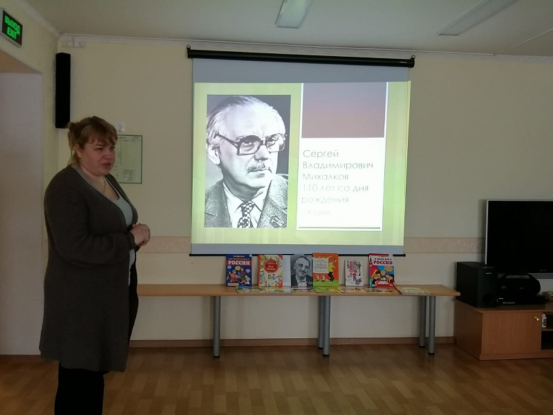 Библиотекарь Юлия Киреева познакомила ребят с жизнью и творчеством Сергея Владимировича – замечательного писателя, автора многочисленных пьес, сценариев, басен, переводов. Ребята с удовольствием послушали стихотворения поэта, посмотрели диафильм «Мой щенок», вспомнили считалочку про котят.