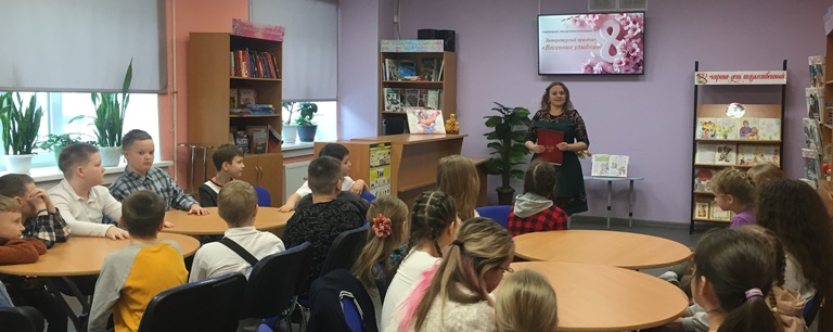 4 марта 2026 года учащиеся 3Б класса МБОУ ЗАТО город Североморск Лицей №1, посетили литературный праздник «Весенние улыбки». На мероприятии третьеклассники узнали историю празднования Международного женского дня, которую рассказала им библиотекарь Юлия Кодаченко. Викторину «Первый подснежник» провела библиотекарь Алина Яценко. Лицеистам очень понравился квест, организованный для них библиотекарем Оксаной Степановой. Все задания школьники выполняли дружно, тем самым показали, свою эрудицию, ум, смекалку, быстроту и находчивость. Затем с большим воодушевлением дети поделились своими идеями подарка для мам и бабушек, который сохранит в себе частичку их души и любви.