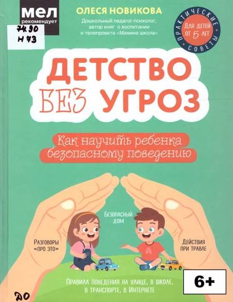 6+Новикова О. С. Детство без угроз : как научить ребенка безопасному поведению : [правила поведения на улице, в школе, в транспорте, в Интернете : практические советы для детей от 5 лет] / Олеся Новикова. – Москва : Эксмо, Бомбора, 2025. – 218, [4] с. : ил. – (Детям про безопасность). – ISBN 978-5-04-184678-7.