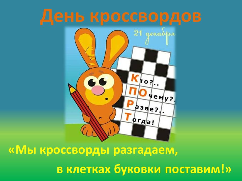День кроссвордов «Мы кроссворды разгадаем, в клетках буковки поставим!»