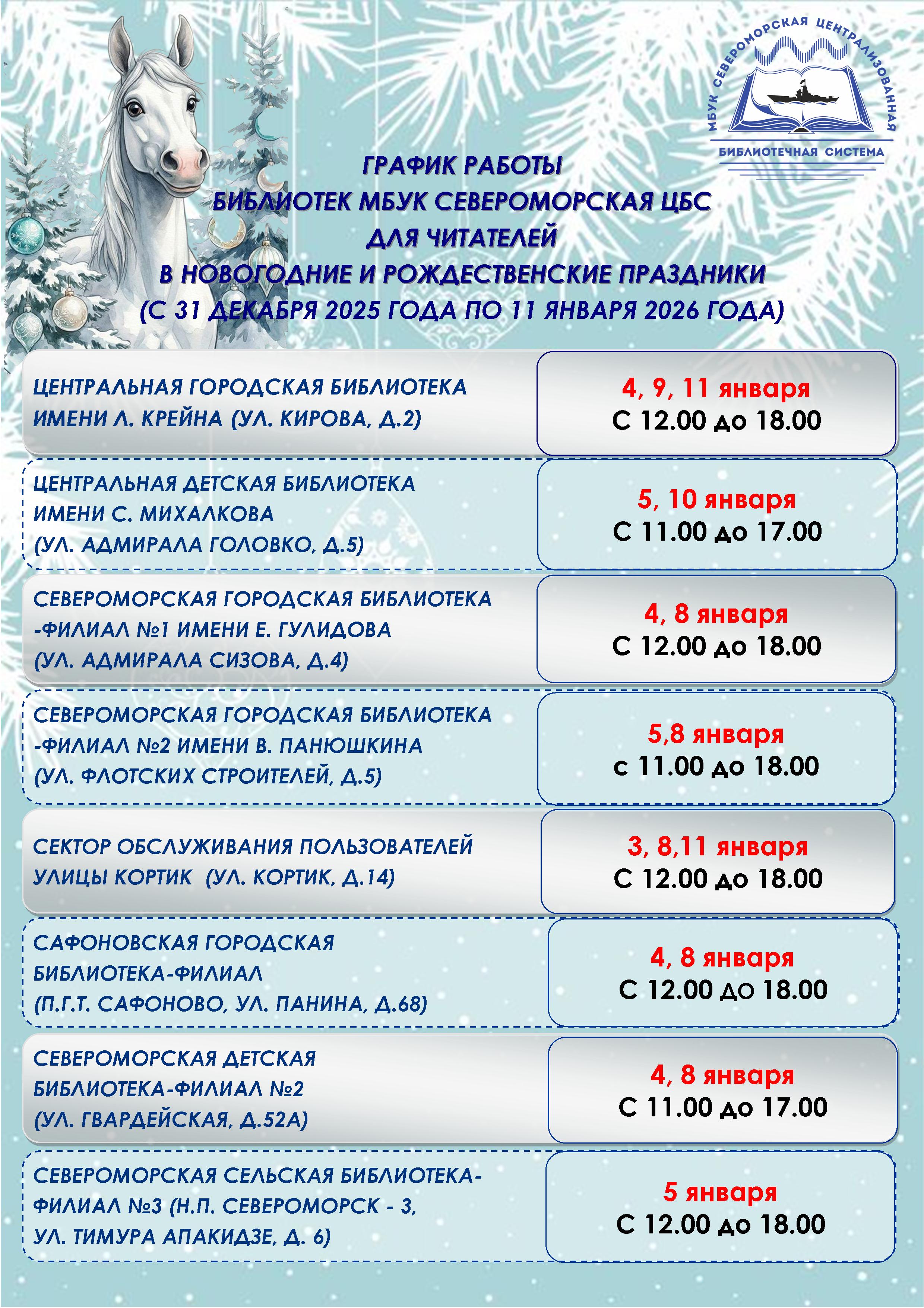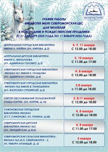 График работы библиотек МБУК Североморская ЦБС в новогодние праздники