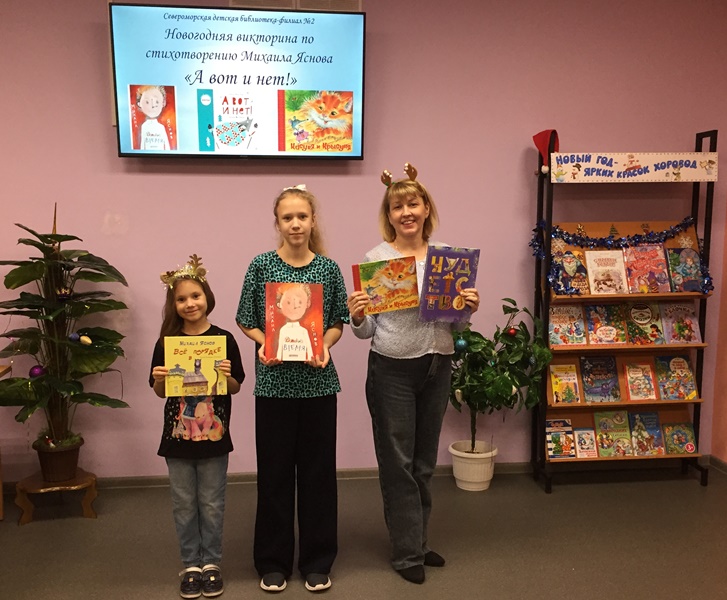 08 января 2026 года библиотекарь Североморской детской библиотеки – филиала №2 Оксана Степанова организовала для юных читателей библиотеки новогоднюю викторину по стихотворению Михаила Яснова «А вот и нет!», приуроченную к 80-летию со дня рождения детского поэта. Читать далее