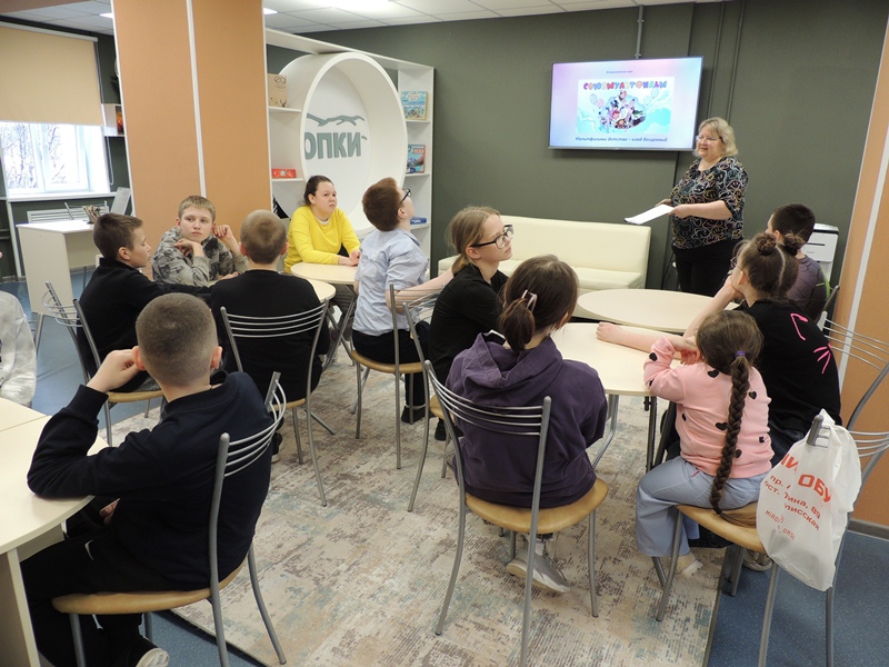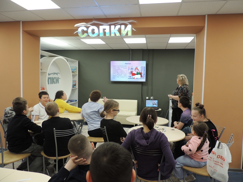 22 апреля в Сафоновской городской библиотеке-филиале прошло познавательно-развлекательное мероприятие для учеников 5 класса, посвященное киностудии «Союзмультфильм».Встреча, посвященная мультипликации, состоялась в игровой форме, ребятам были предложены разные задания, где они должны были узнать героя мультфильма по фразе, разгадать мультребус, узнать героя по описанию, угадать название мультика по предметам или по описанию, ну и разгадать из какого мультфильма та или иная песня.