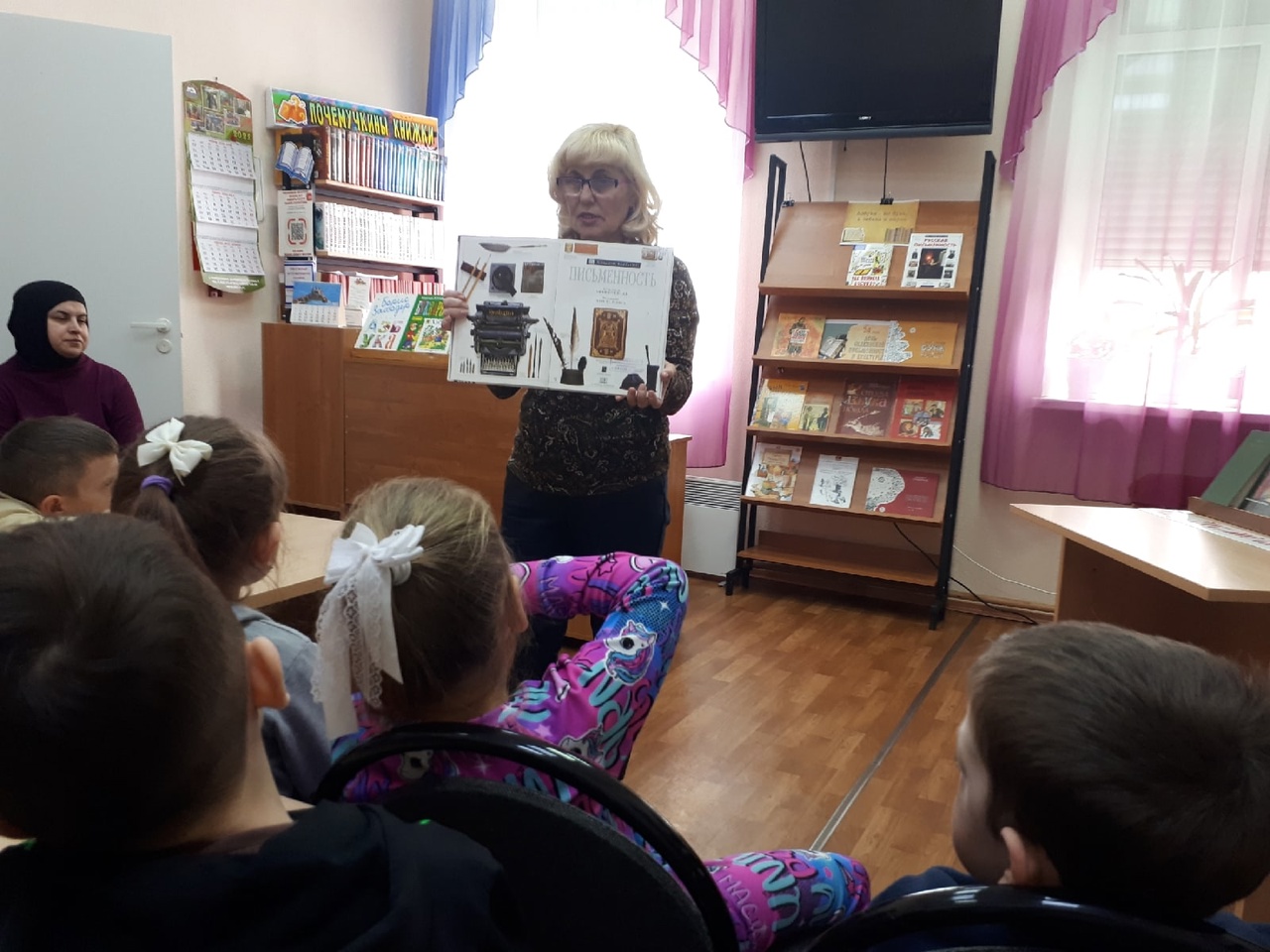 Заведующая библиотекой провела познавательное путешествие с помощью красочных слайдов, погрузив ребят в мир древних букв и символов.