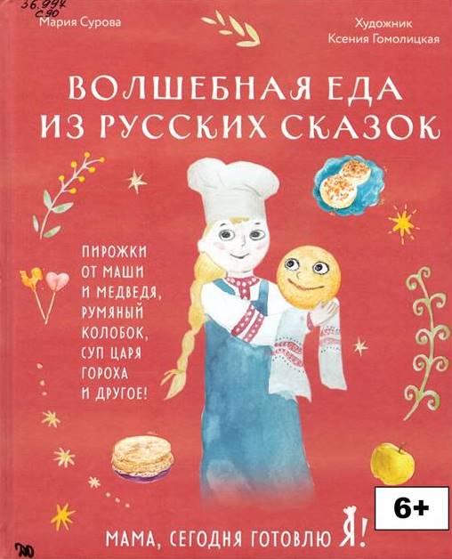 6+Сурова М. В. Мама, сегодня готовлю я! Волшебная еда из русских сказок : пирожки от Маши и медведя, румяный Колобок, суп царя Гороха и другое! / Мария Сурова ; художник Ксения Гомолицкая. – Москва : Эксмо, Хлеб&Соль, 2024. – 124, [2] с. : цв. ил. – (Кулинария. Готовим с детьми). – ISBN 978-5-04-194804-7.