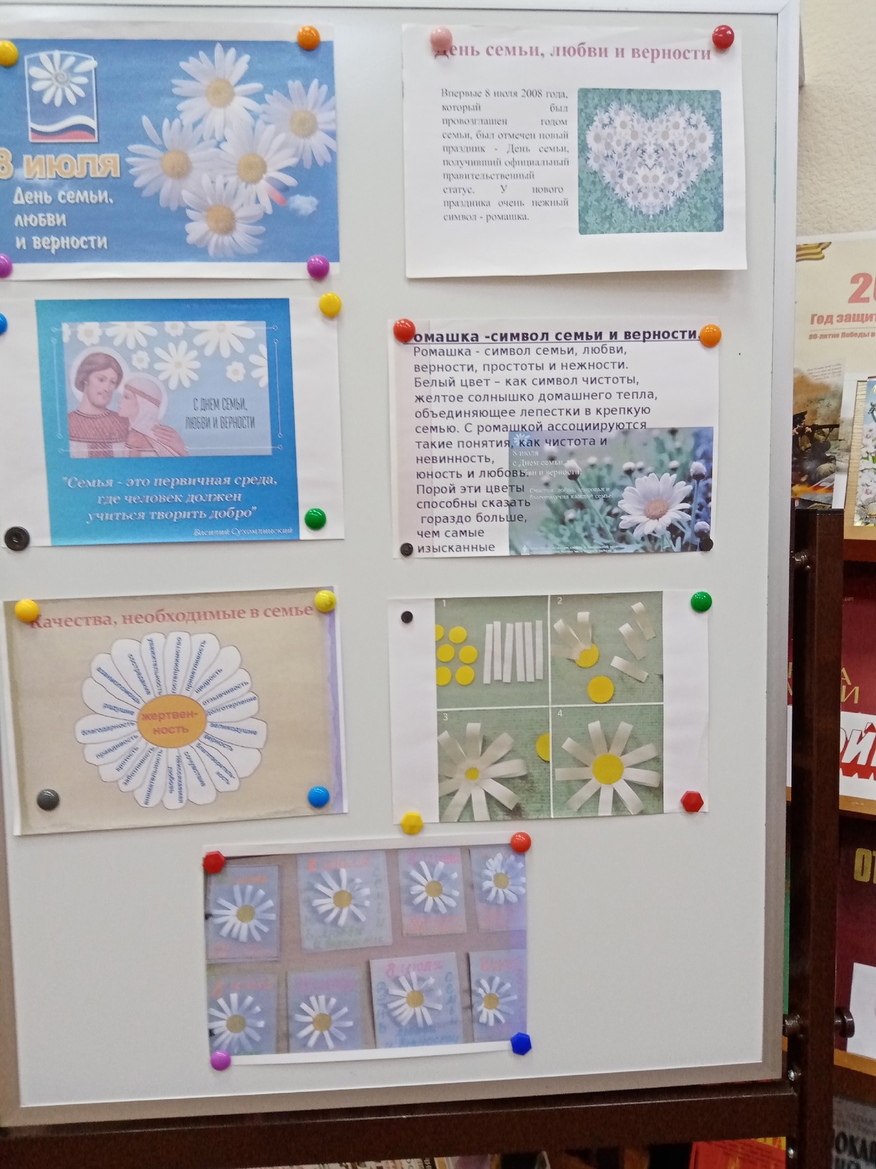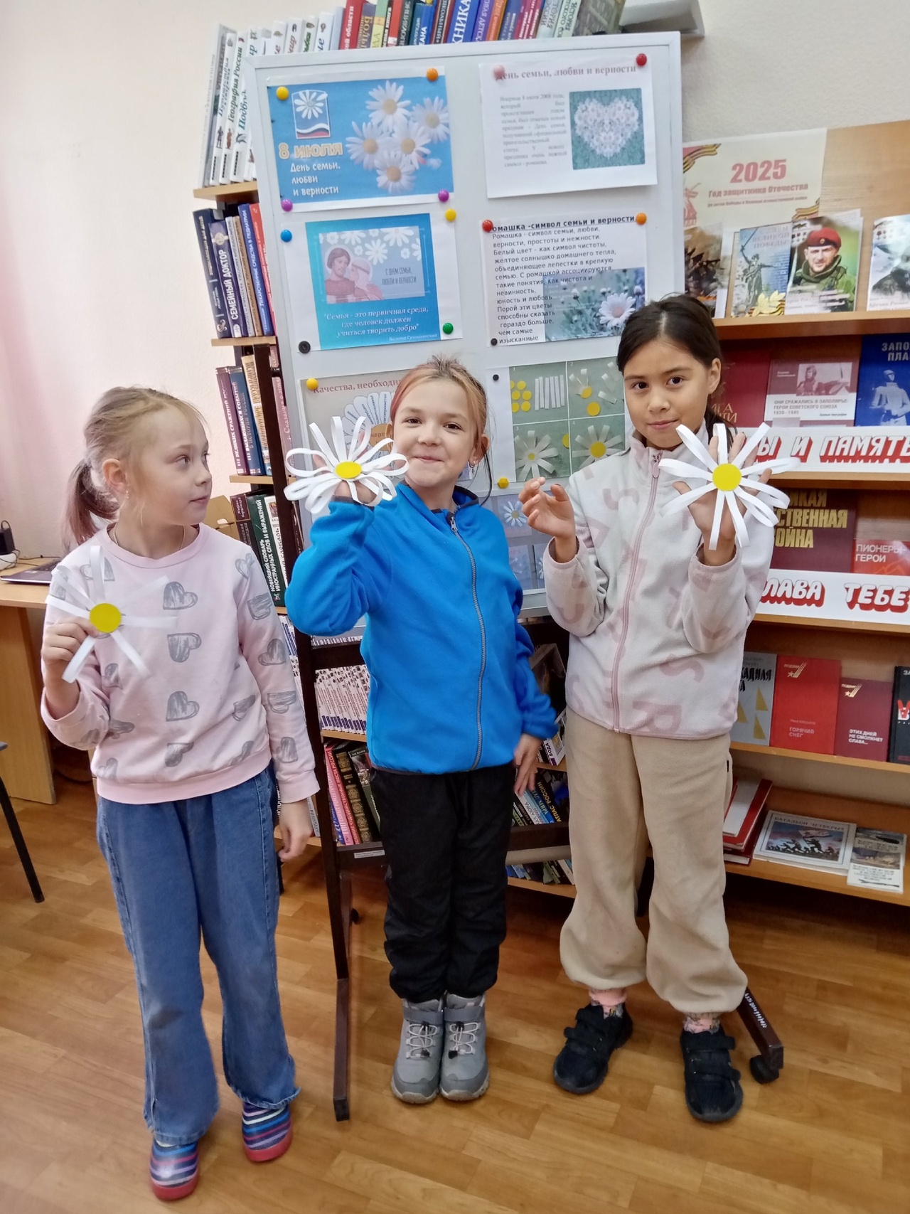 8 июля 2025 года в Североморской сельской библиотеке-филиале №3 прошёл творческий мастер-класс “Ромашки нежный лепесток”.Ребята прослушали рассказ библиотекаря  об истории праздника, о его покровителях — Петре и Февронии. Затем  юные  участники мастер-класса, приложив мастерство, фантазию и любовь, изготовили ромашку своими руками. Вскоре у всех желающих в руках красовались красивые ромашки. Дети получили массу положительных эмоций, узнали много нового и интересного. Этот день запомнится им только добрыми и тёплыми впечатлениями.