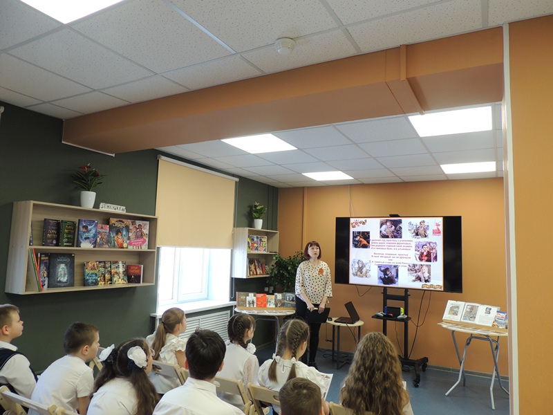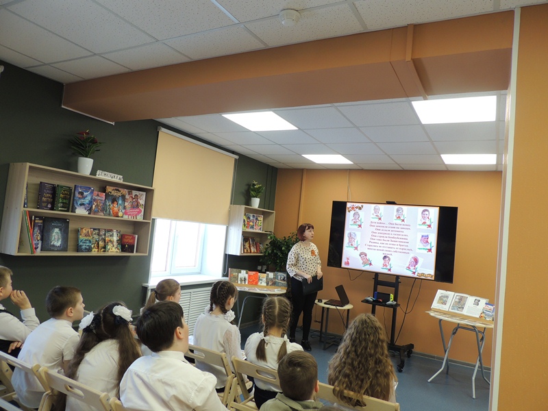 7 мая 2025 года в Сафоновской городской библиотеке – филиале (пгт. Сафоново, ул. Панина д.68) для учеников третьих классов МБОУ СОШ №2 ЗАТО г. Североморск прошёл урок памяти «И дети тоже воевали…»Юным читателям, посетившим в этот день библиотеку, библиотекарь рассказала о детях войны, о подвигах юных героев, которые, несмотря на свой возраст, проявили невероятное мужество и самоотверженность во время Великой Отечественной войны. За свои подвиги они были удостоены высшей награды Родины — звания Героя Советского Союза.
