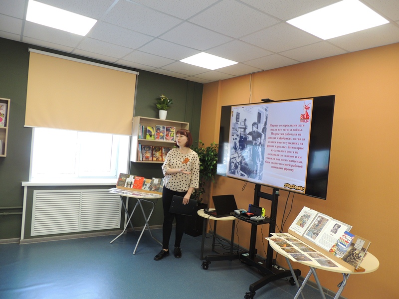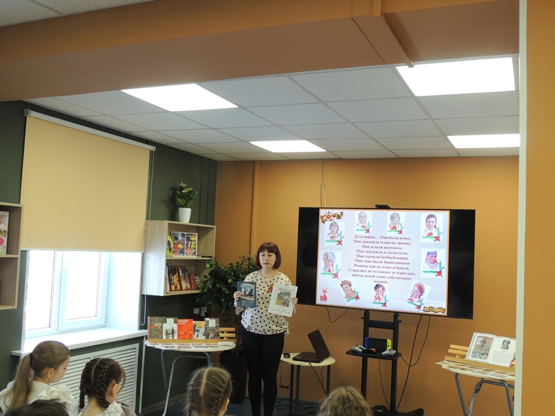 В заключение мероприятия библиотекарь провела обзор художественных книг о подвигах детей во время Великой Отечественной войны. Познакомившись с книгами, ребята просмотрели отрывок из фильма «Самые юные герои Великой Победы», после чего пришли к выводу, что люди не должны забывать, какой ценой завоёвана Победа!