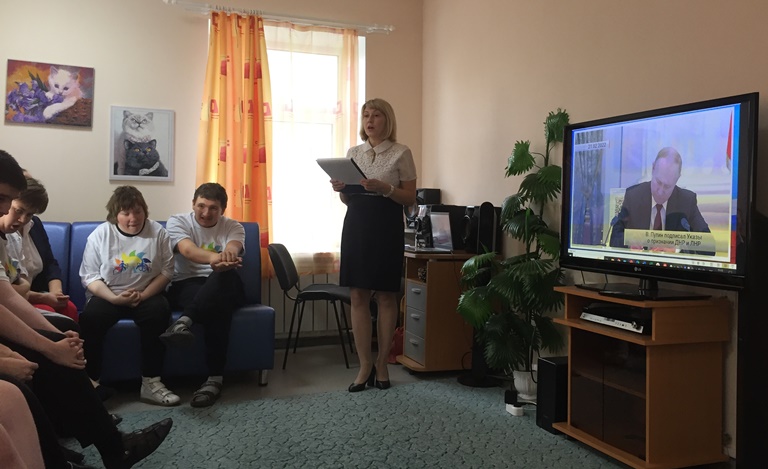 - Оксана Степанова приветствует молодых инвалидов Комплексного центра социального обслуживания населения