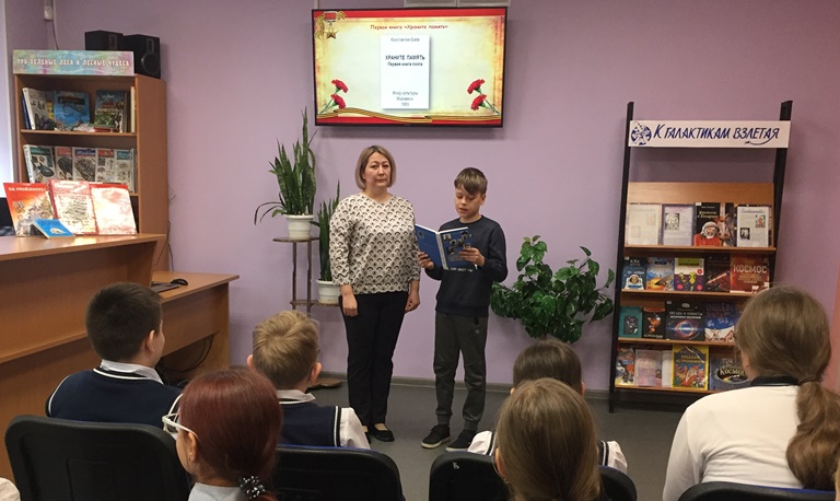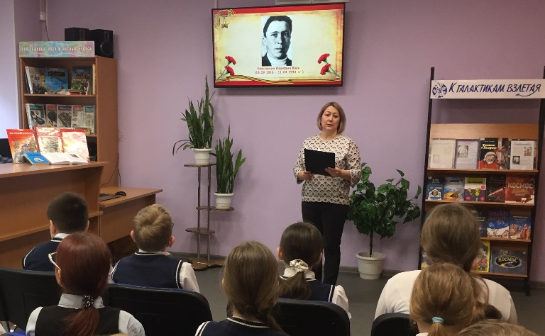 03 апреля 2026 года ученики 4 Б и 4В классов МБОУ ЗАТО город Североморск Лицей №1 посетили урок-реквием «Родился поэтом – стал солдатом», приуроченный к 110-летию со дня рождения мурманского поэта Константина Баева. Библиотекарь  2 категории Североморской детской библиотеки – филиала №2 Алина Яценко рассказала о жизни и тяжелом творческом пути поэта – журналиста, воспевающего ратный подвиг народа. Стихи, посвященные подвигам воинов – североморцев, их самопожертвованию и готовности к бою произвели впечатление на лицеистов. Ведущая мероприятия отметила особую ценность фронтовых корреспонденций Кости Баева, вошедших в хроники мурманской журналистики. Особым открытием для четвероклассников стала информация о том, что в годы Великой Отечественной войны Константин Иванович Баев стал добровольцем и погиб, но его волнующие душу, музыкальные стихотворения продолжают жить в веках. Завершился урок – реквием творческим заданием. Ребята приняли участие в акции «Нашим воинам»,  их  рисунки проиллюстрировали героический вклад русского народа – победителя.