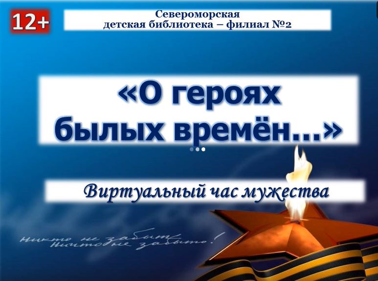 9 декабря  2021 года в группе  Североморской детской библиотеки – филиала №2 в социальной сети «ВКонтакте» (https://vk.com/cbs_sdb2) библиотекарь Наталия Кондратова подготовила и опубликовала материалы виртуального часа мужества, приуроченного к  Дню героев Отечества «О героях былых времен…».