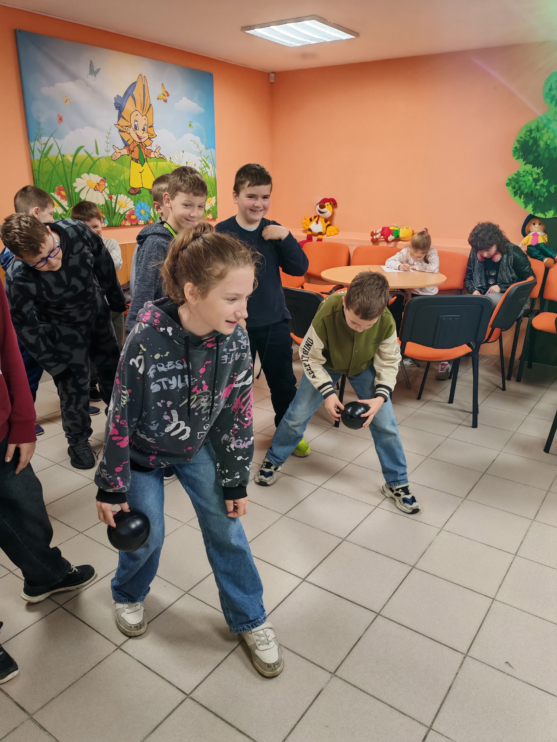 Чтобы закрепить свои знания, ребятам было предложено на каждом континенте сыграть в игру: «Кенгуру», «Корзина с фруктами», «Боулинг», «Животное – континент», «Ребусы – города», «Мимика и жесты».