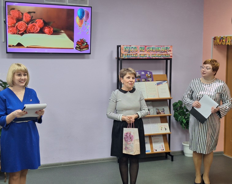 Праздничное мероприятие открыла директор МБУК Североморская ЦБС, депутат Совета депутатов ЗАТО город Североморск, заслуженный работник культуры РФ, почетный гражданин города Североморска Ефименко Ольга Анатольевна. Гости праздника поздравили коллектив библиотеки с юбилеем, пожелали творческих успехов и активных читателей. Заведующая библиотекой вручила диплом «Верный друг библиотеки» и поблагодарила за помощь депутата Новикова Андрея Николаевича, а также отметила активное участие в творческой жизни библиотеки семьи Галатоновых и вручила диплом «Лидер чтения» Галатоновой Оксане Владимировне.