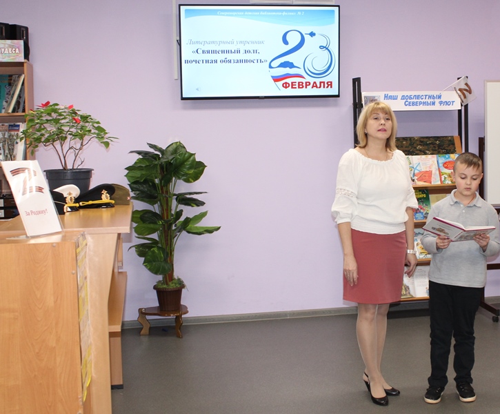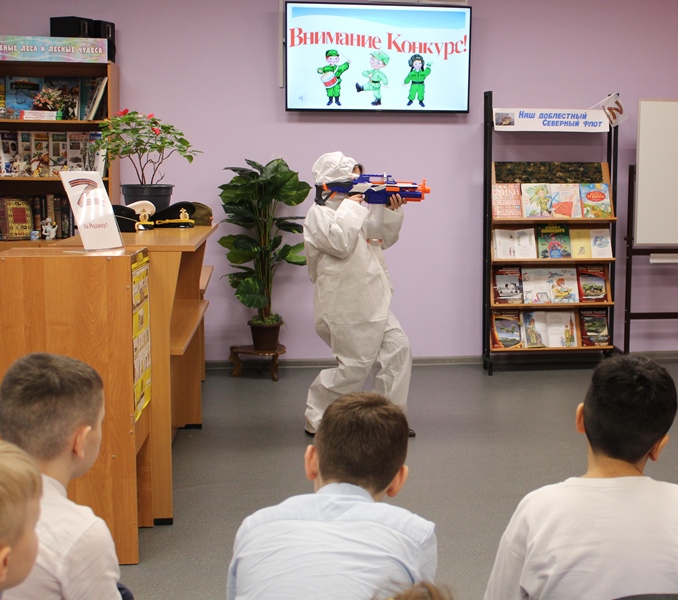 13 февраля 2025 года на очередное заседание клуба «Ронадо» в Североморской детской библиотеке – филиале №2 собрались ученики 2А класса МБОУ ЗАТО город Североморск Лицей №1. Библиотекарь 1 категории Оксана Степанова провела для участников клуба литературный праздник «Священный долг, почетная обязанность», приуроченный к Дню защитника Отечества. Рассказ об истории становления Российской армии и викторина по теме очень понравились второклассникам. Ребята с увлечением читали стихи о величии русского оружия и славе российского солдата. Библиотекарь 2 категории Алина Яценко, в образе военнослужащей вооруженных сил РФ, сообщила собравшимся о нелегкой профессии снайпера. Мероприятие продолжилось увлекательными конкурсами и творческими занятиями. Лицеисты показали, что могут обладать выдержкой, владеют метким словом, юмором и отличным вниманием.